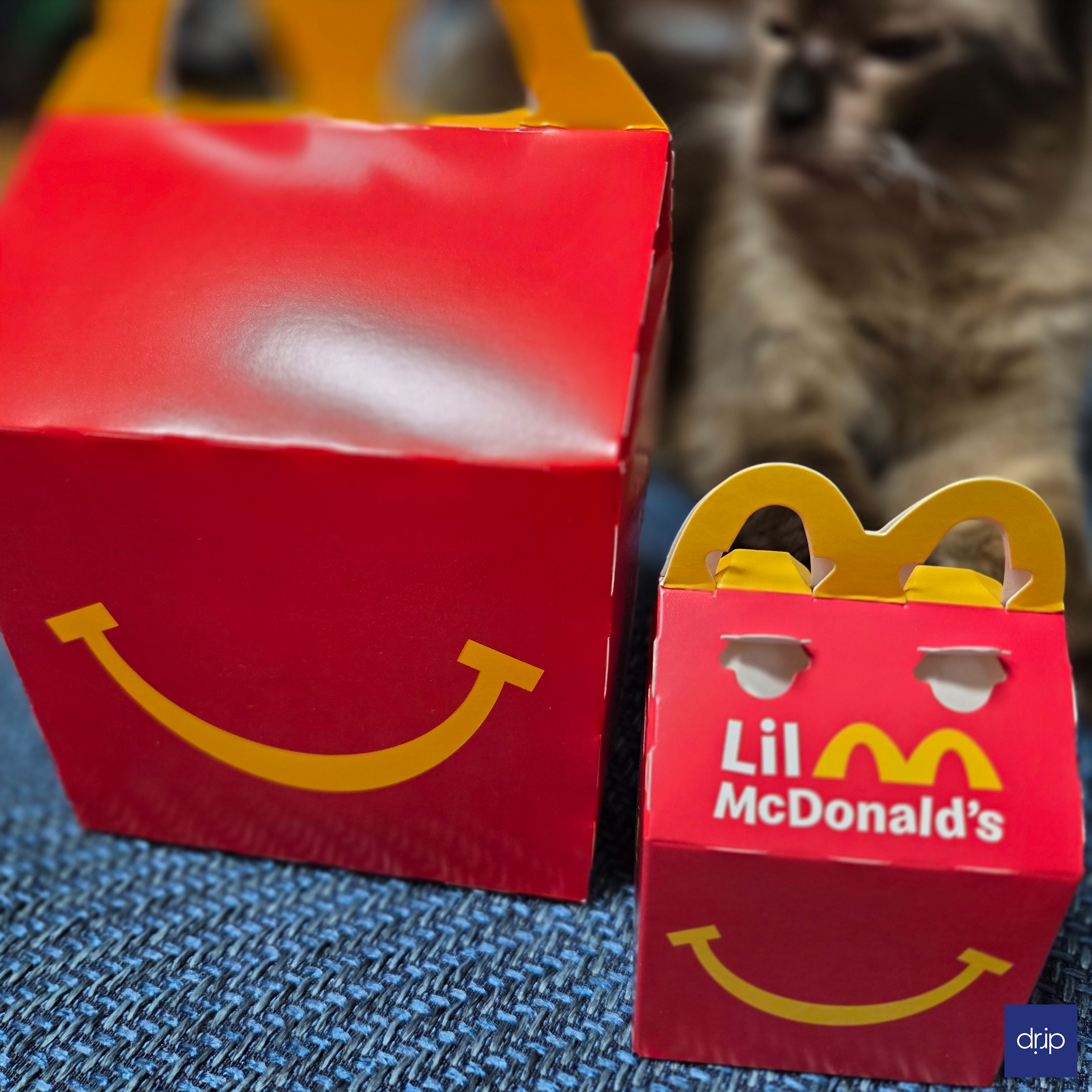 해피밀 박스와 장난감 박스 비교샷인데 흐리게 나왔네요.