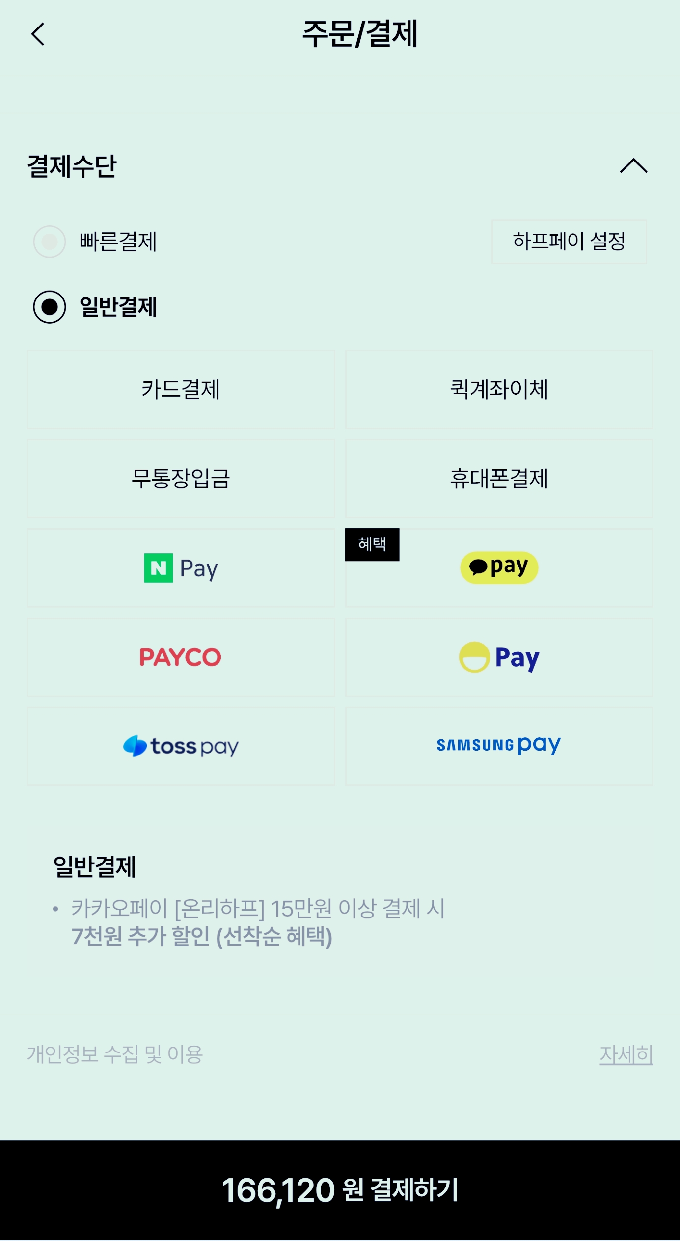 결제방법은 페이코를 선택하시구요.