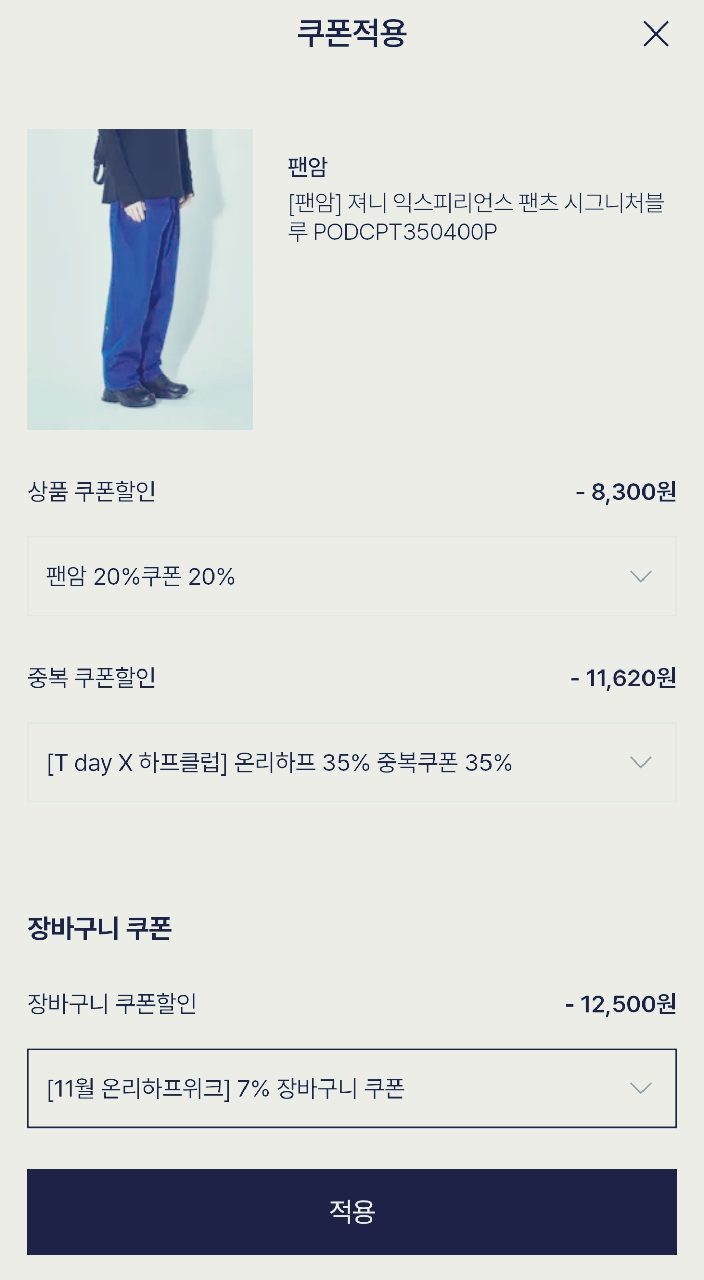 원하는 제품을 담고 쿠폰적용에서 쿠폰을 하나하나 열어보고 적용하세요.