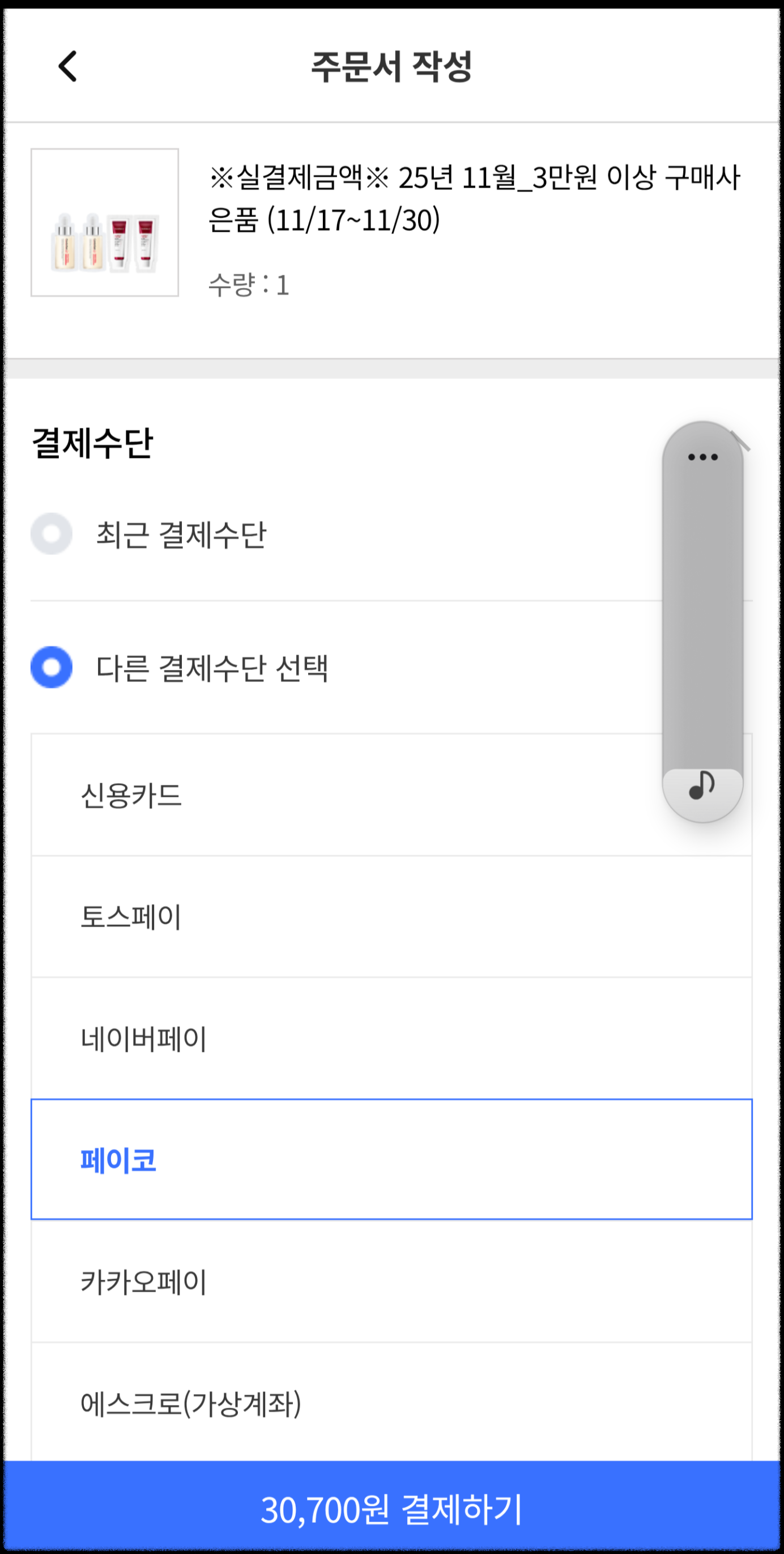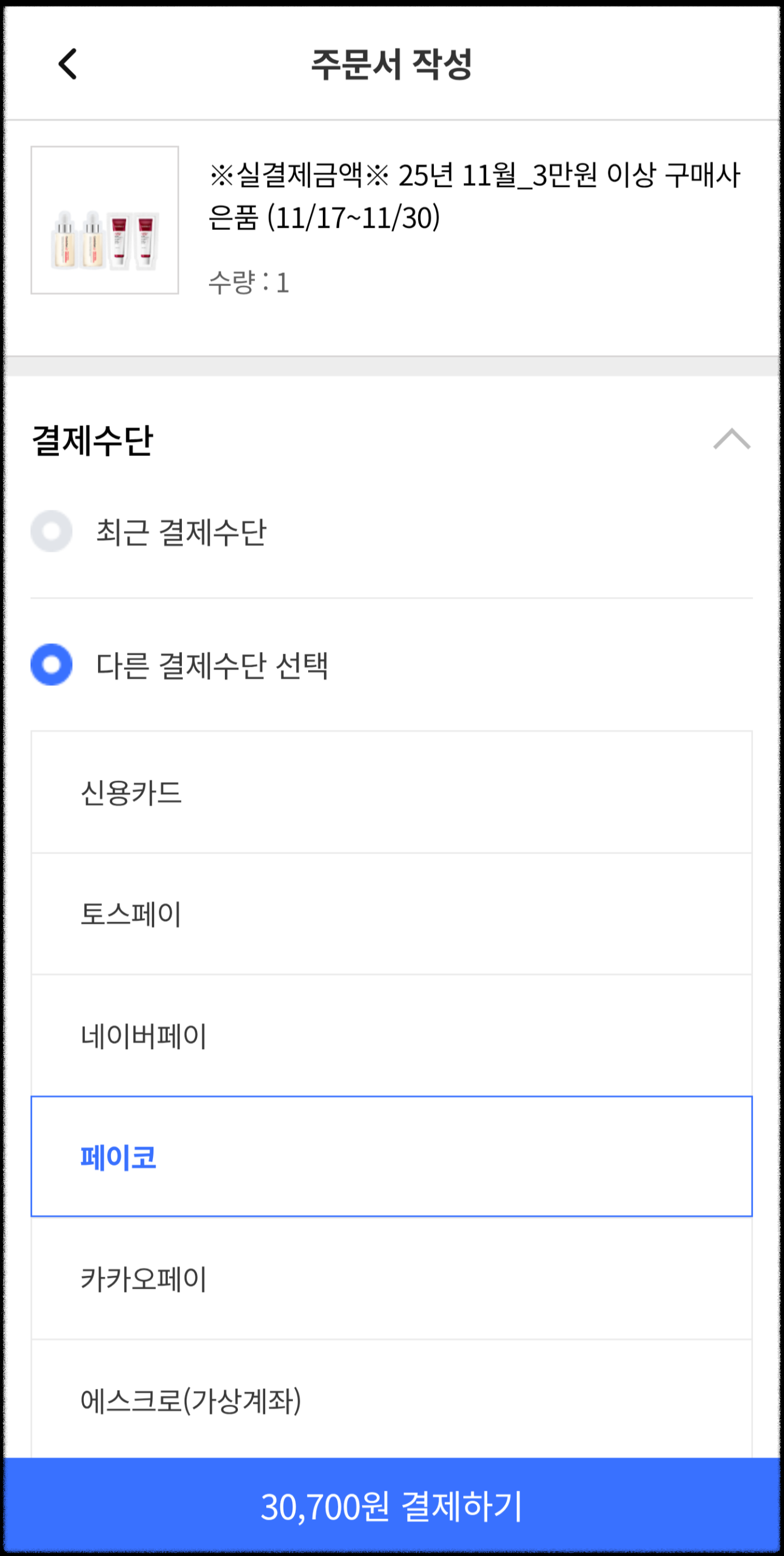 - 결제 수단으로 페이코를 선택하여 결제를 진행한다.