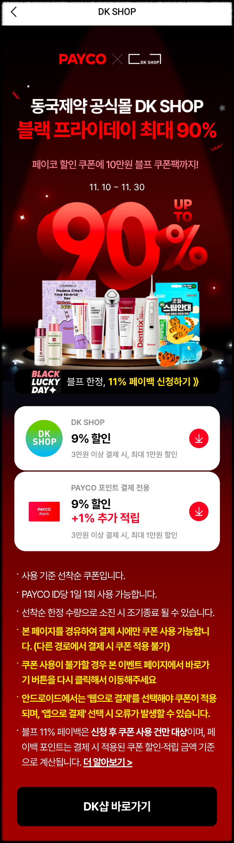 - 동국제약 X 페이코 9% 할인 접속 링크: http://payco.kr/pzxcL?partyId=HBhjjg6EKd