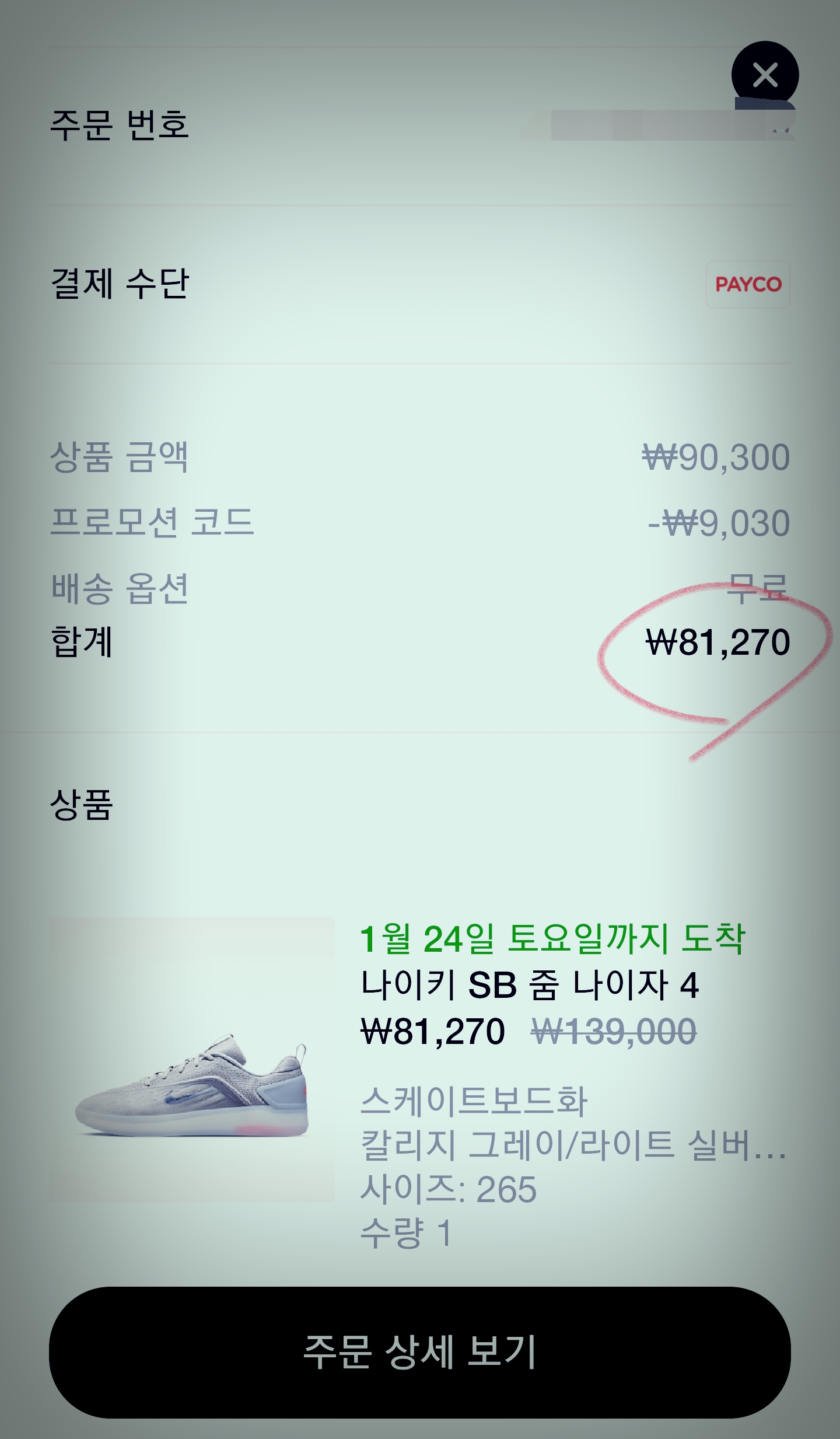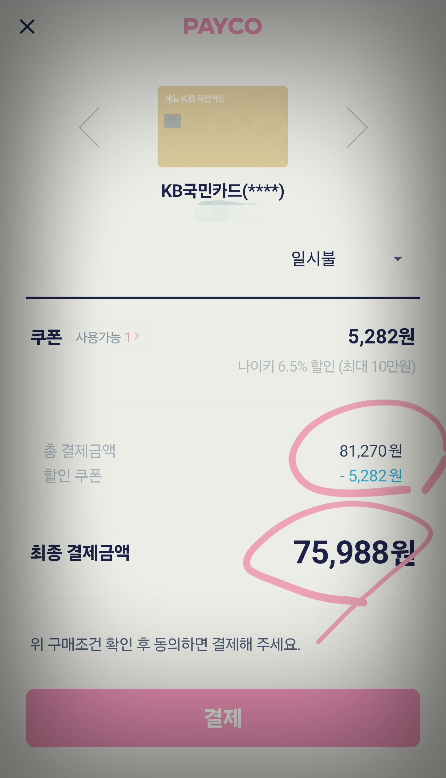 나이키 앱에서 결제수단 페이코로 선택하시구요.