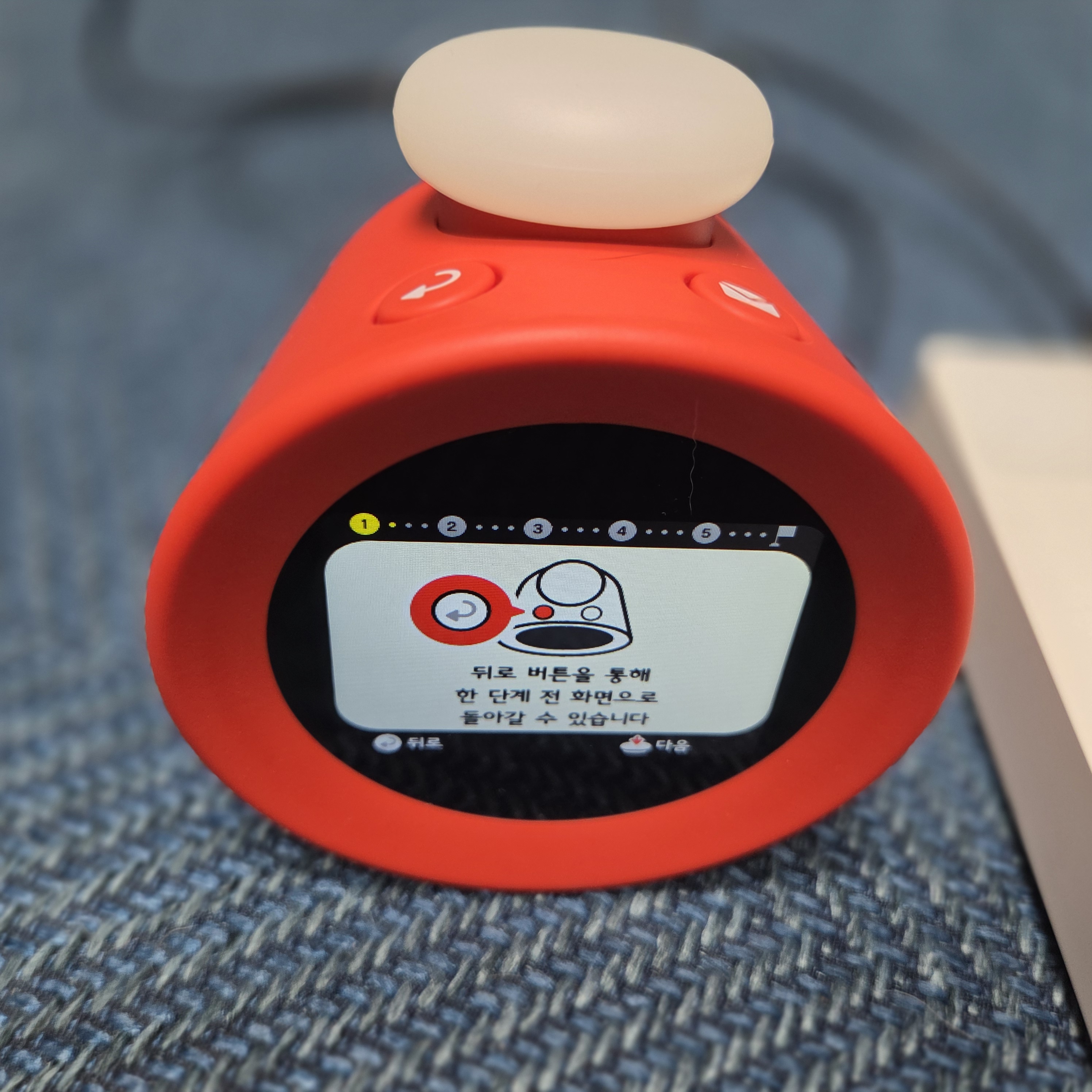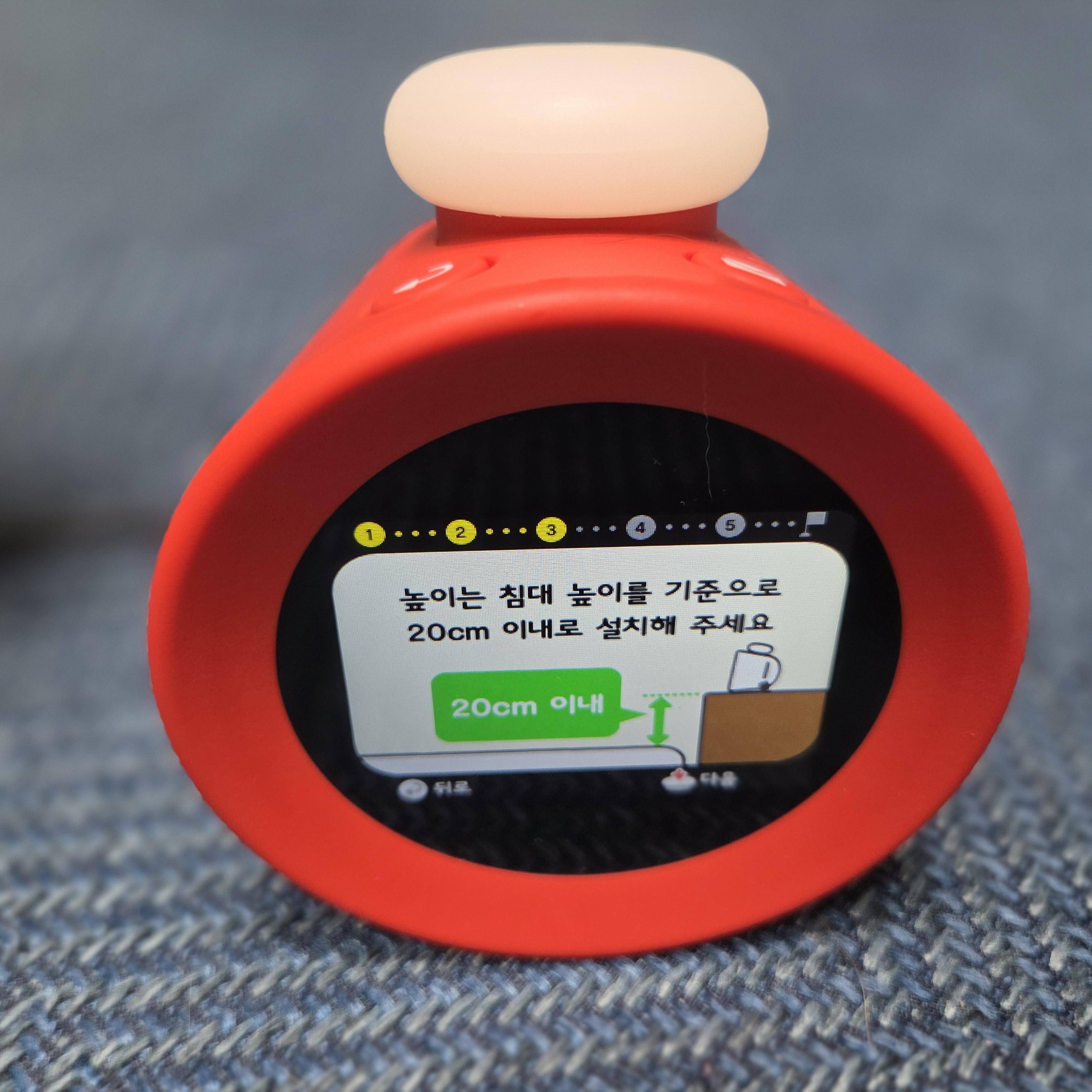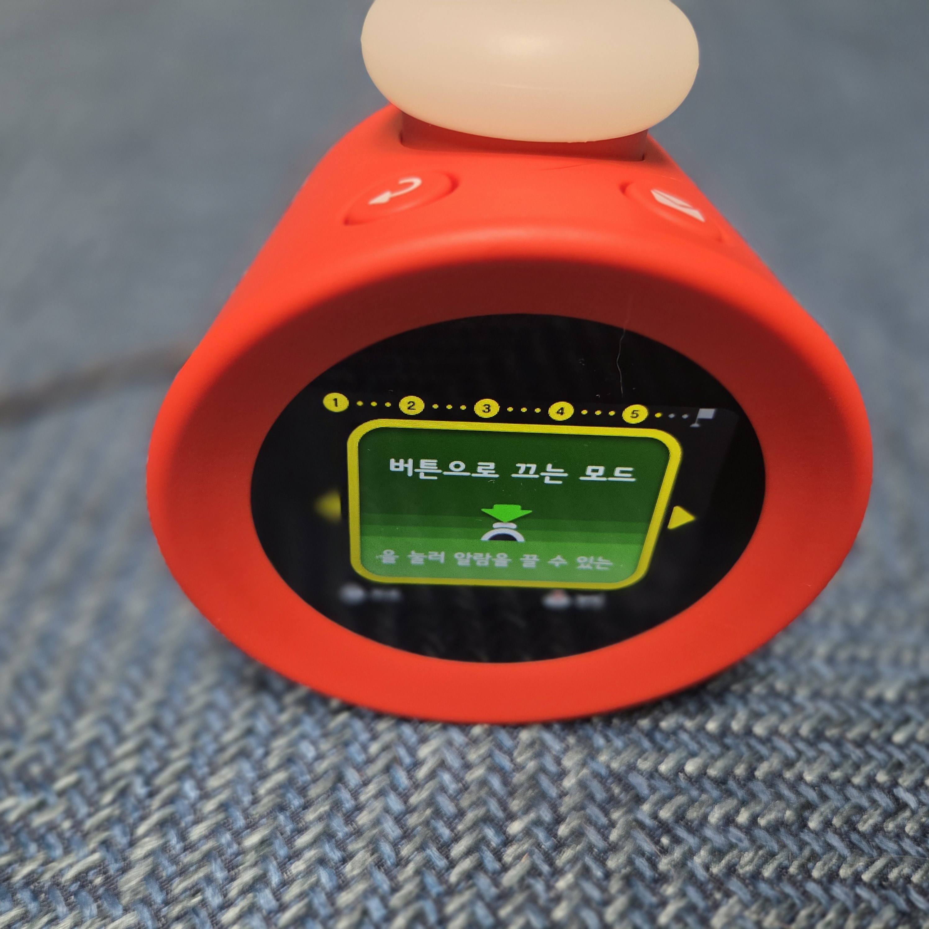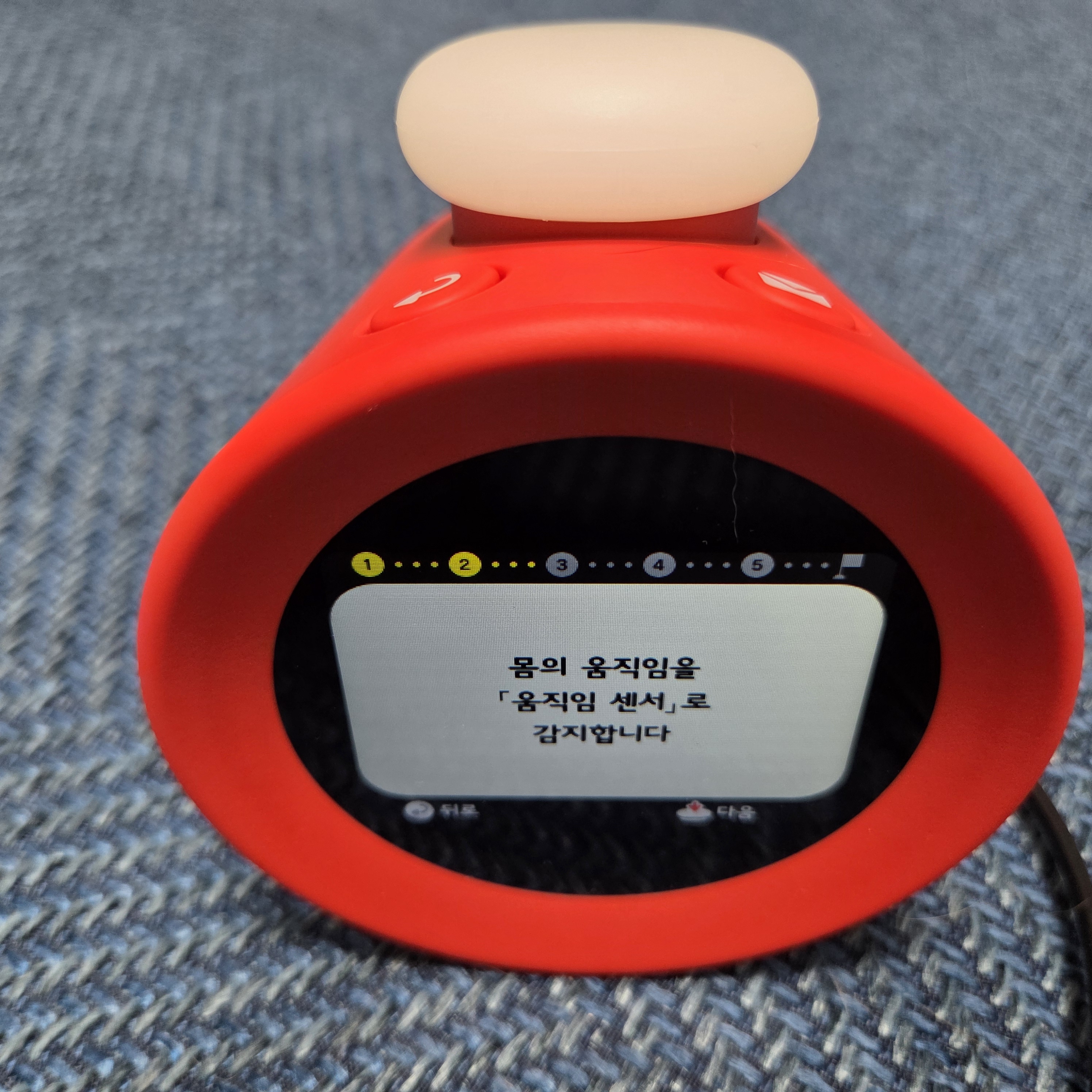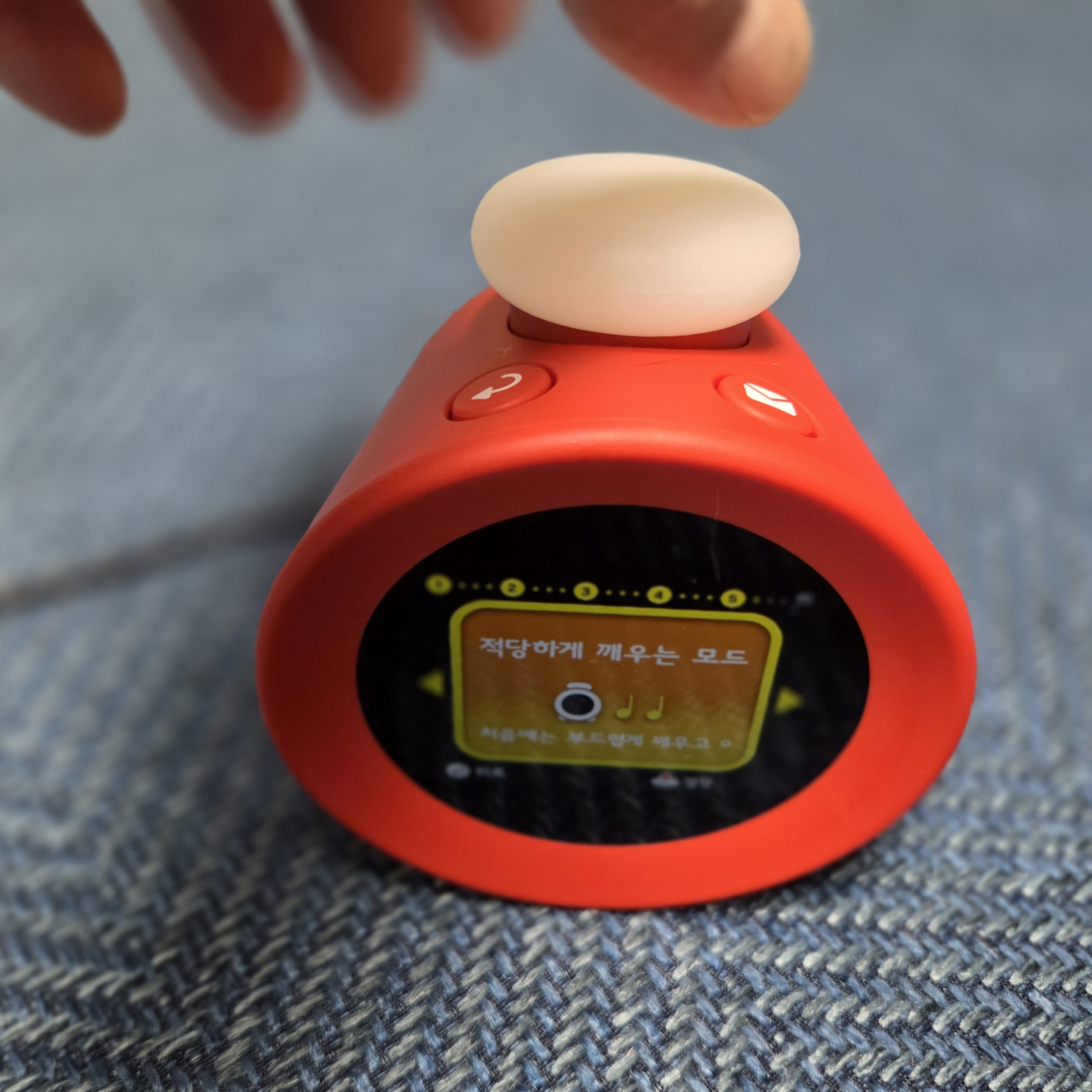 상단의 커다란 다이얼 버튼과 뒤쪽의 센서 부분이 핵심입니다. 이 작고 귀여운 시계가 내 움직임을 감지해서 잠을 깨워준다니 신기할 따름이에요.