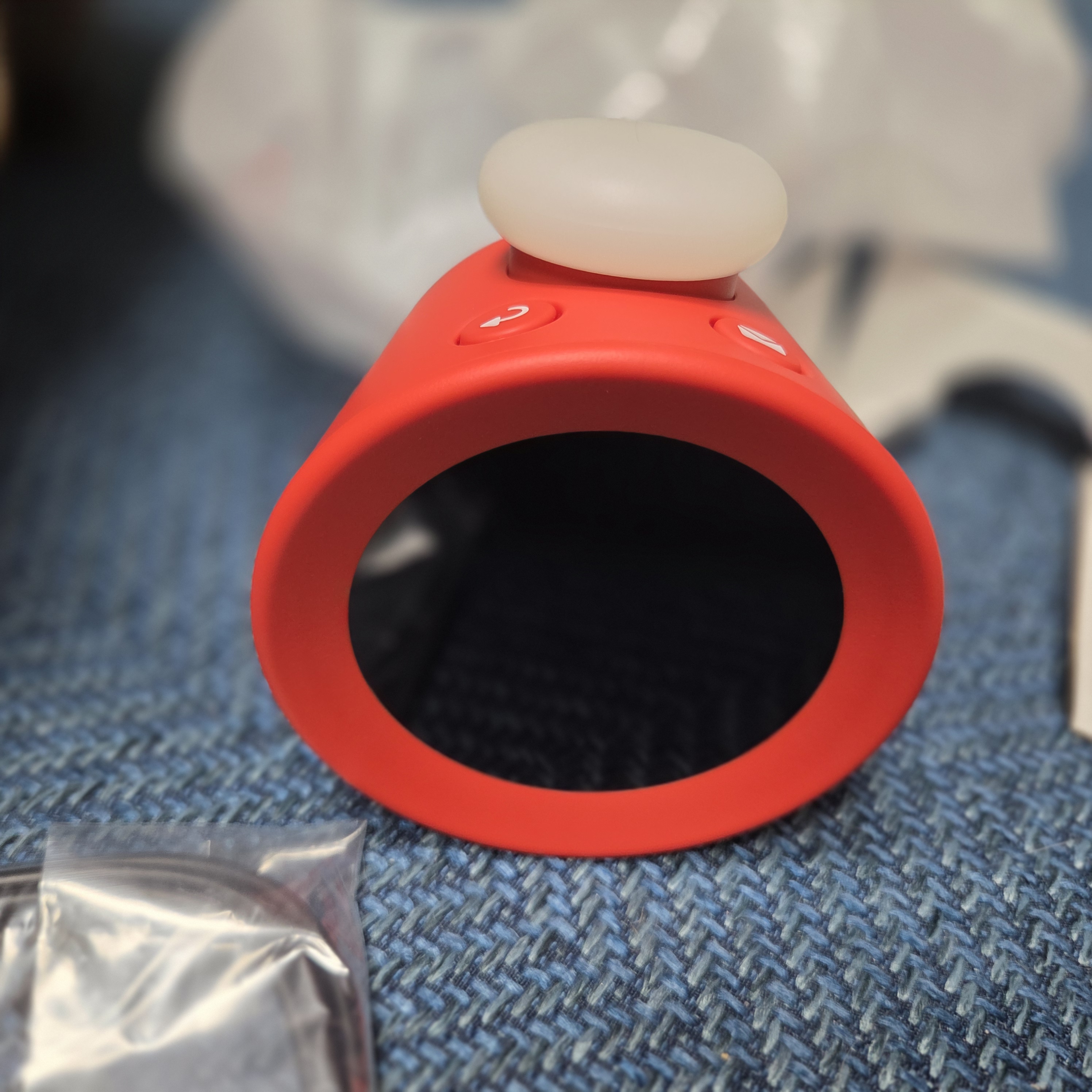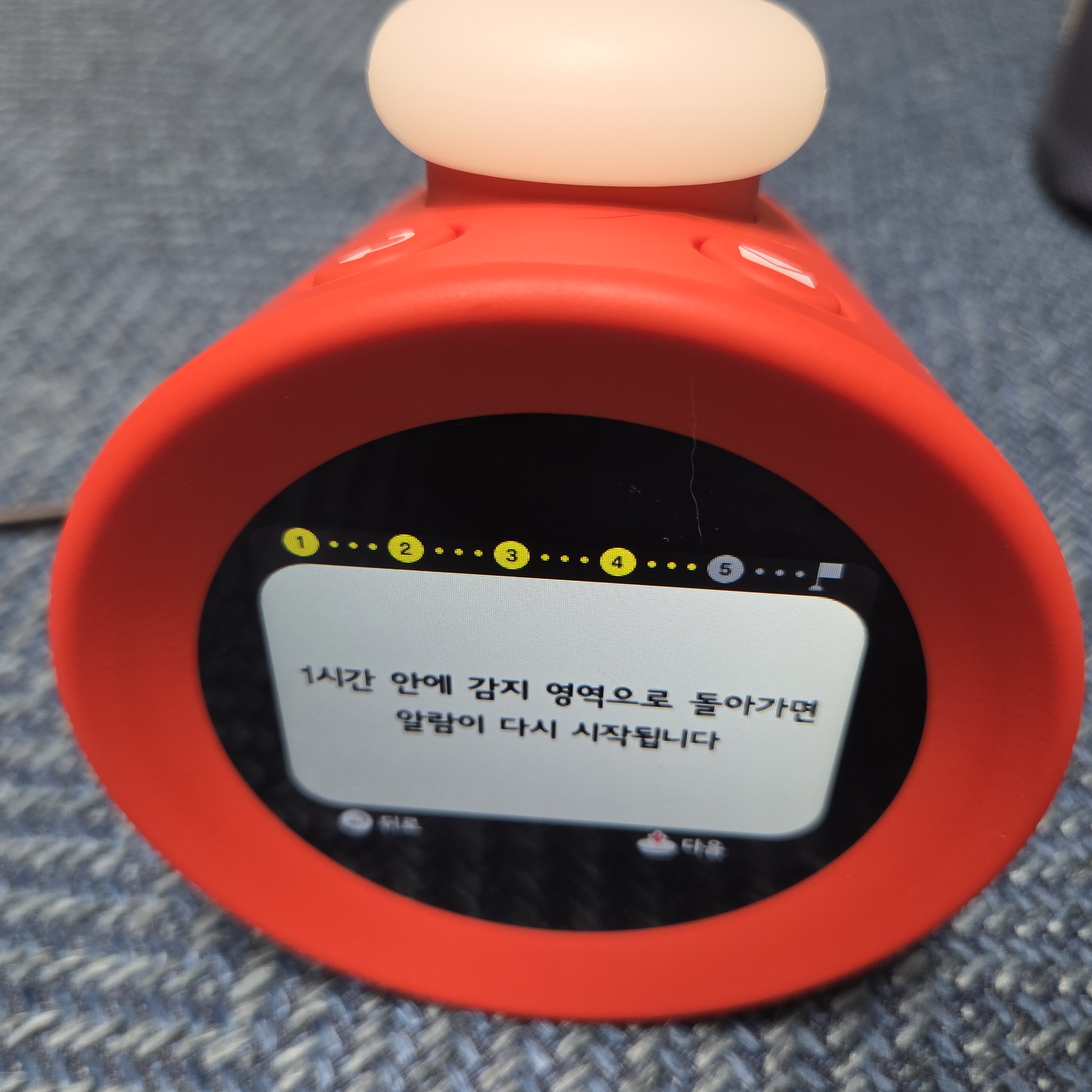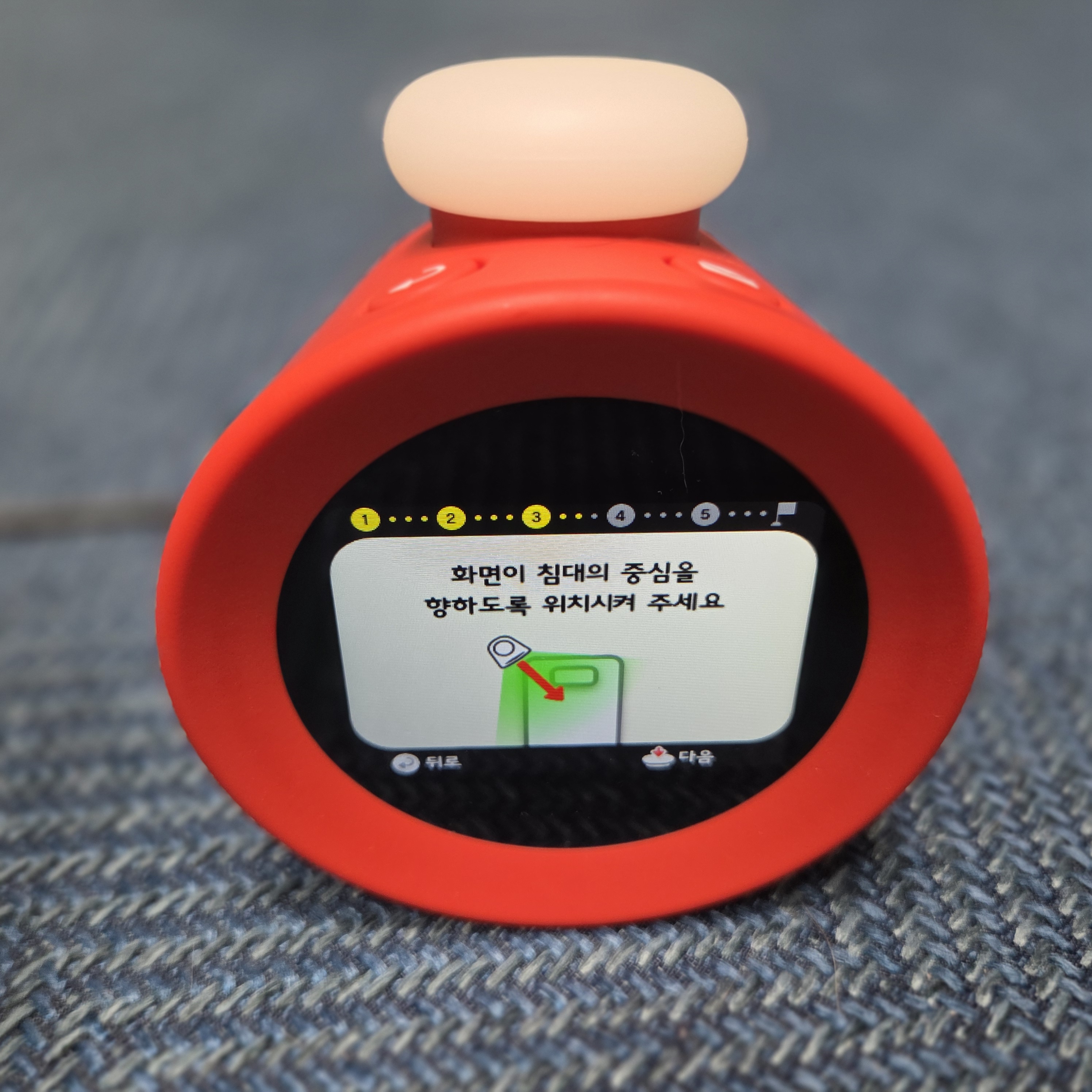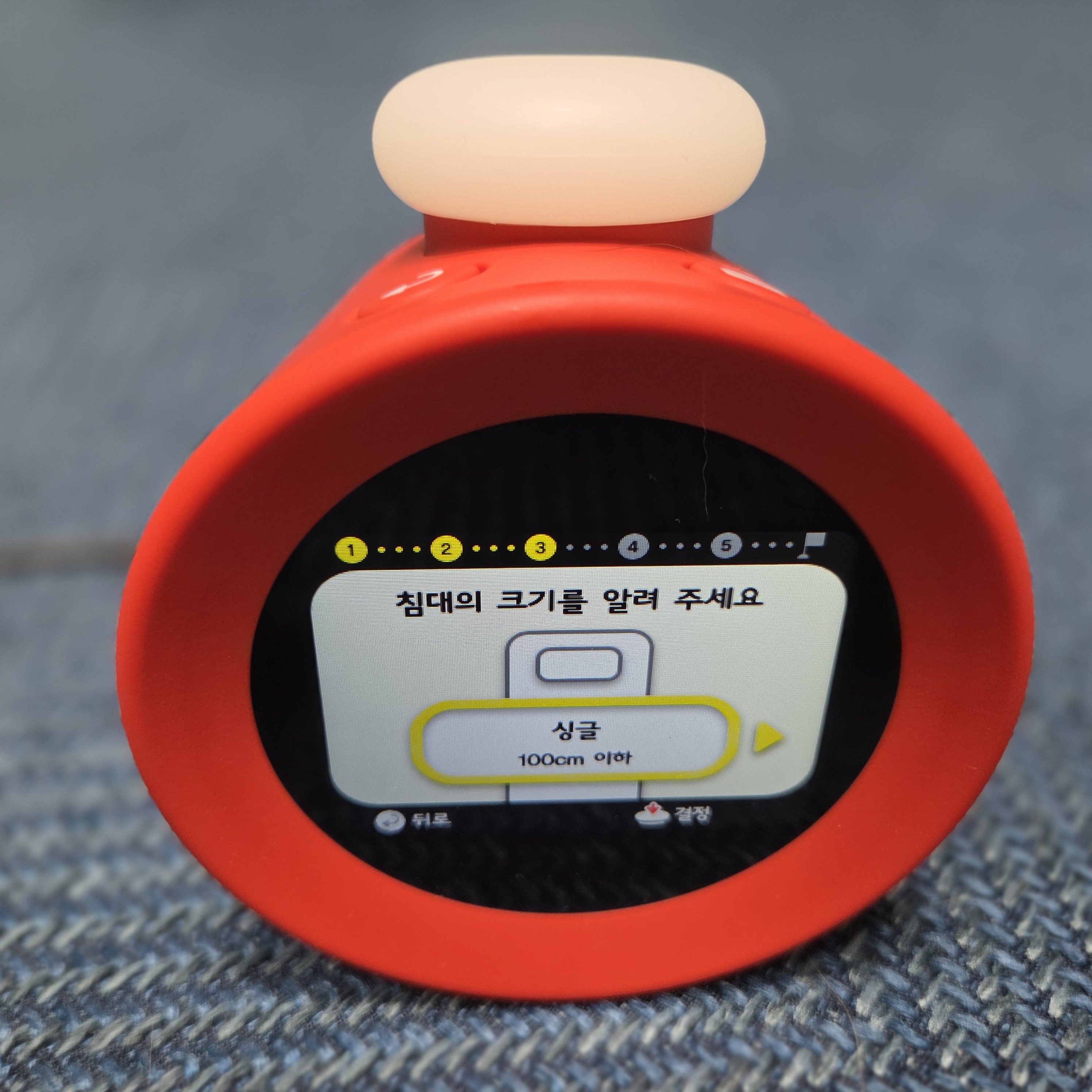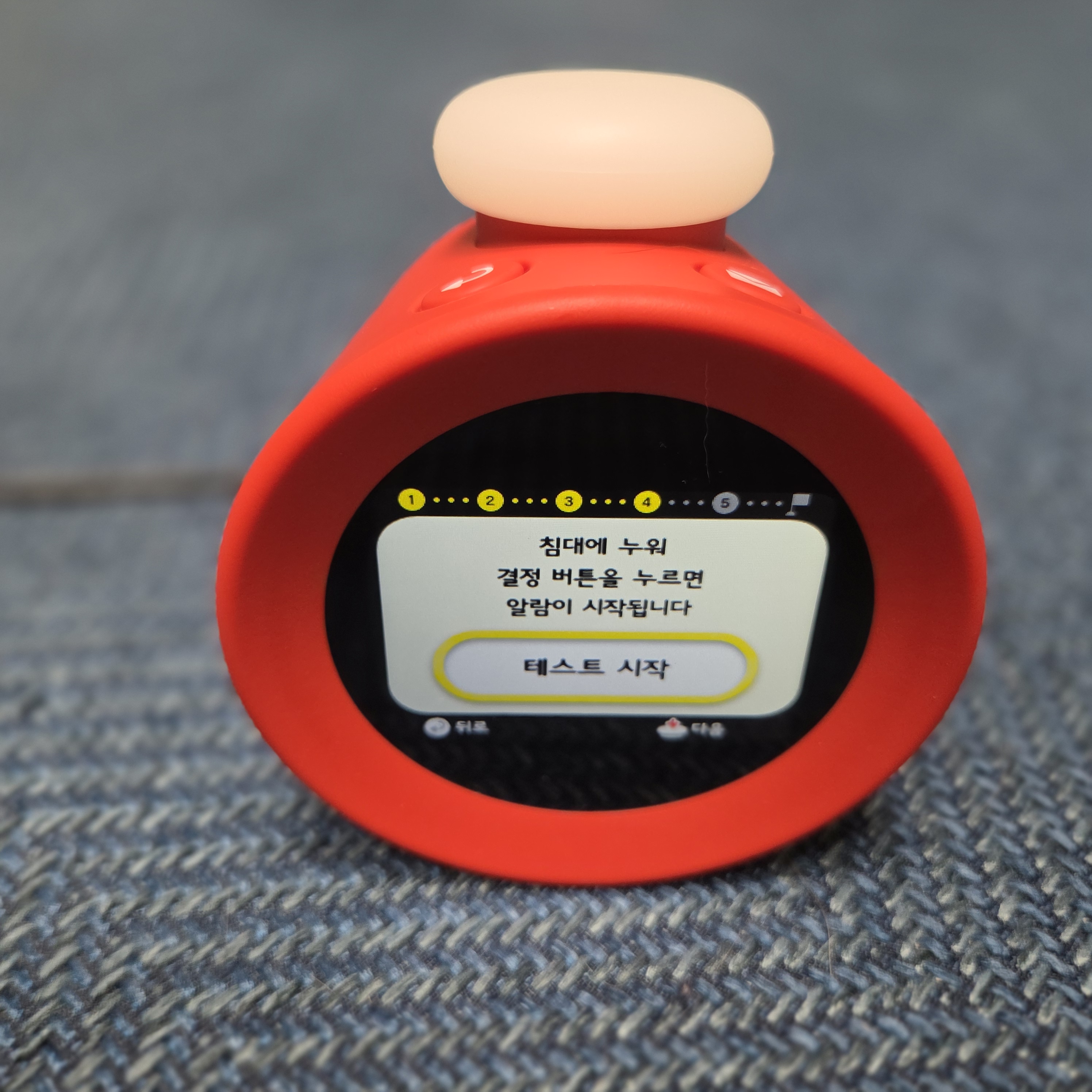 상단의 커다란 다이얼 버튼과 뒤쪽의 센서 부분이 핵심입니다. 이 작고 귀여운 시계가 내 움직임을 감지해서 잠을 깨워준다니 신기할 따름이에요.