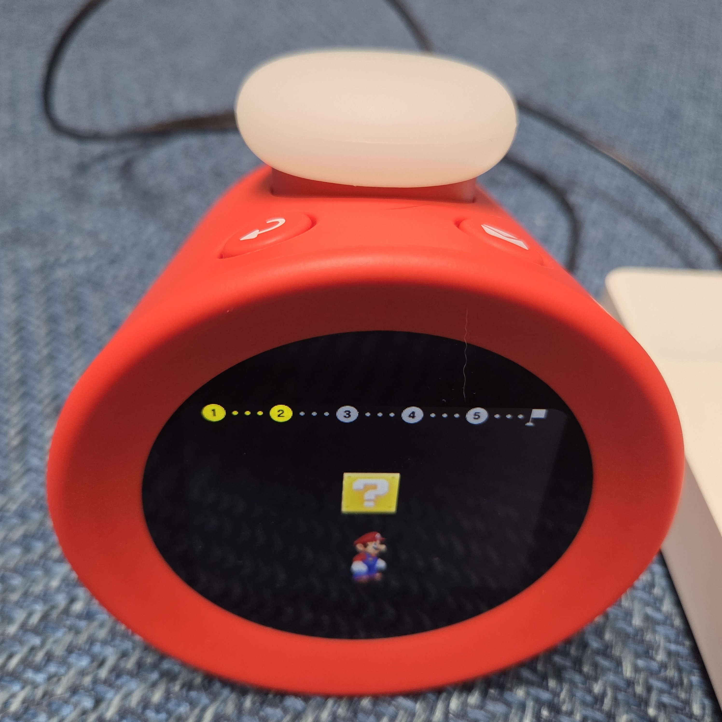 전원을 켜면 친숙한 캐릭터들과 효과음이 흘러나옵니다. 화질도 생각보다 선명하고, 무엇보다 닌텐도 게임 속 사운드로 아침을 맞이할 수 있다는 게 가장 큰 매력 포인트네요.